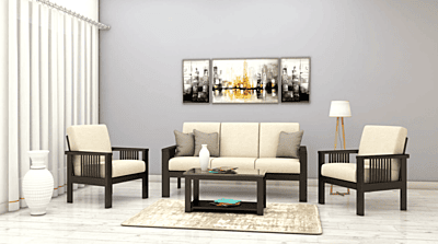 Primary Material : Treated wooden frame, webbing, high density PU foam and high quality PVC Style : Modern Finish : Fabric and Leatherette Features : Ergonomically designed seating and backrest blend of functionality and quality comfortable seating and backrest
