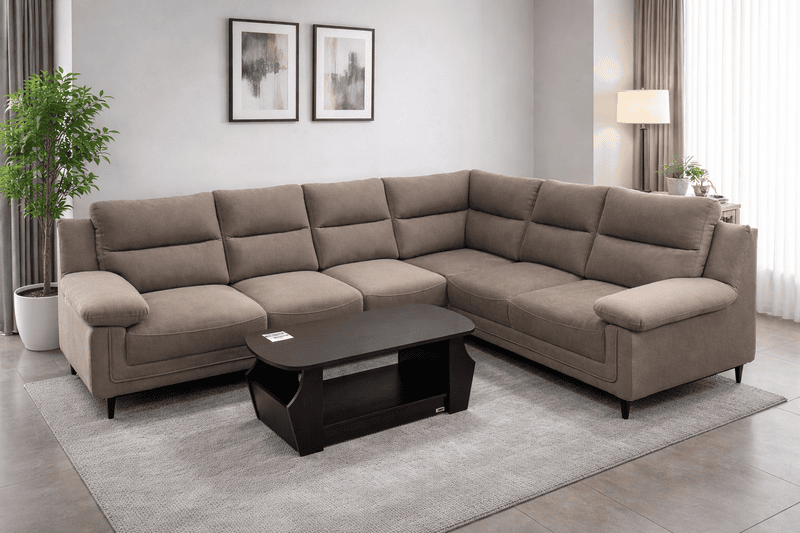 The LEO L-Shape Sofa blends luxury, comfort, and functionality to create the perfect seating solution for modern homes. Crafted with a strong internal frame and upholstered in soft, high-quality fabric, this sofa offers long-lasting durability with a refined appearance.