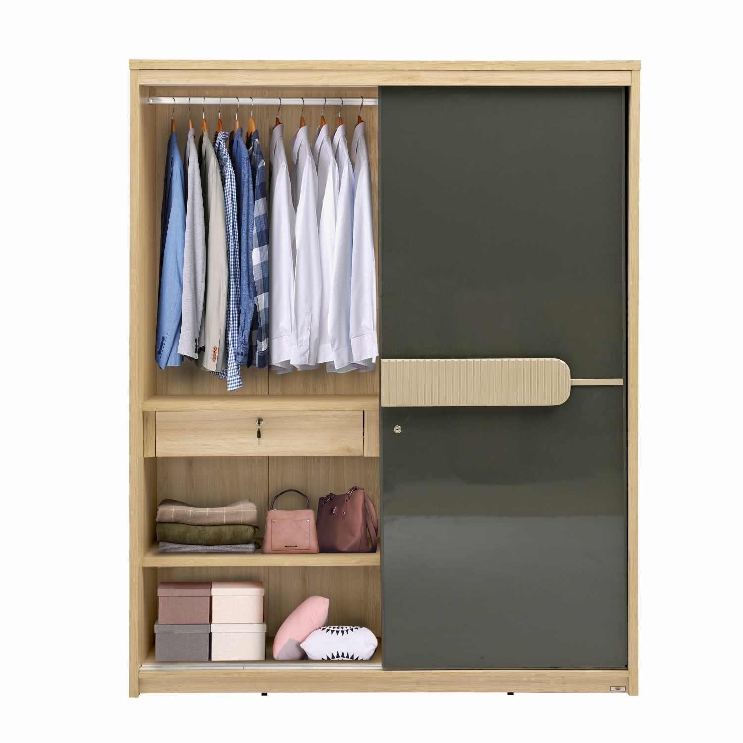 Transform your space with the Athena 2 Door Sliding Wardrobe. Crafted from melamine-faced engineered wood, this wardrobe features high gloss finish shutters and a unique two-tone design with locking functionality. Its decorative MDF beading adds a stylish touch, while the adjustable and removable bottom shelf provides versatile storage options. Designed with space for hanging clothes and attractive fluted handles, this wardrobe combines functionality with a modern aesthetic to complement any room.