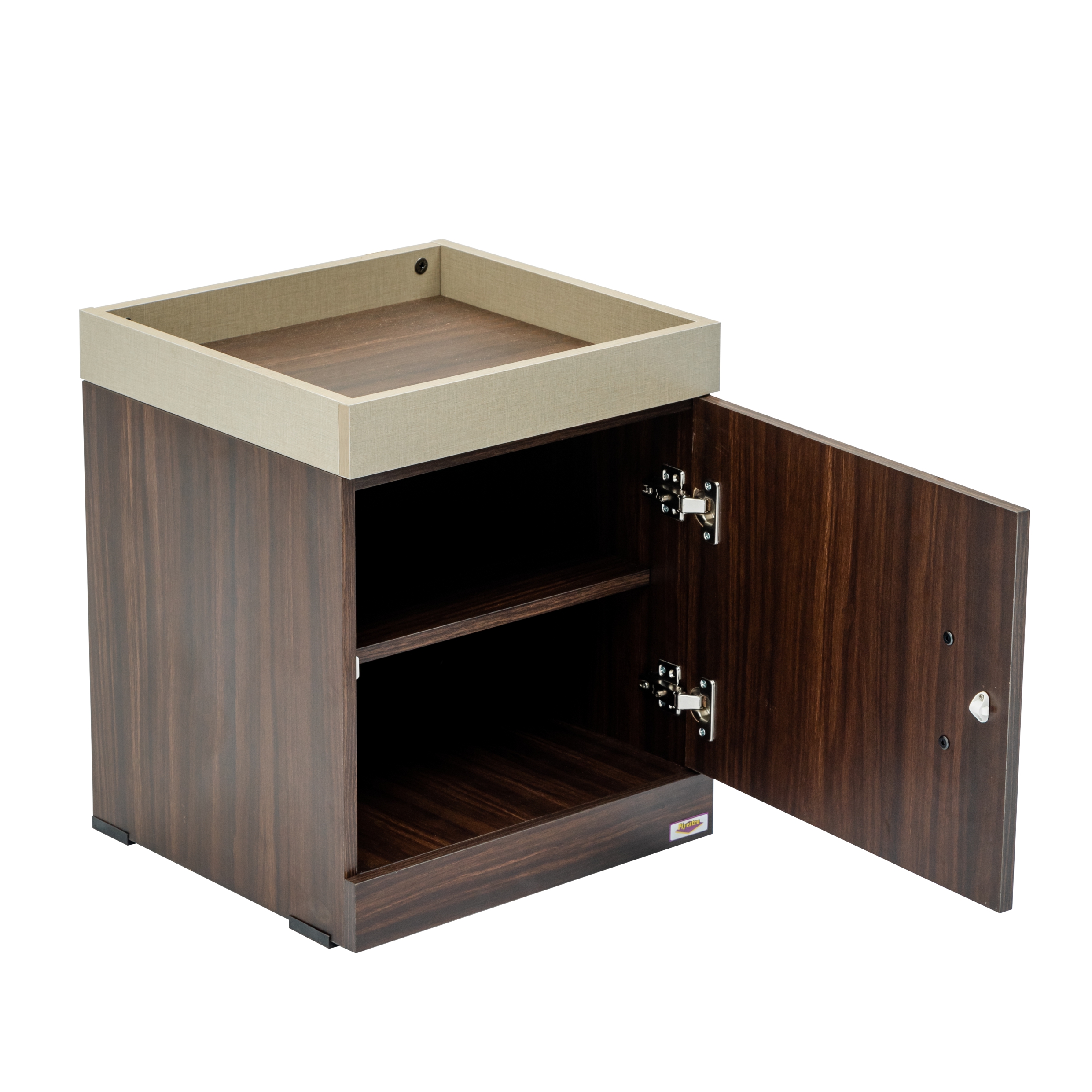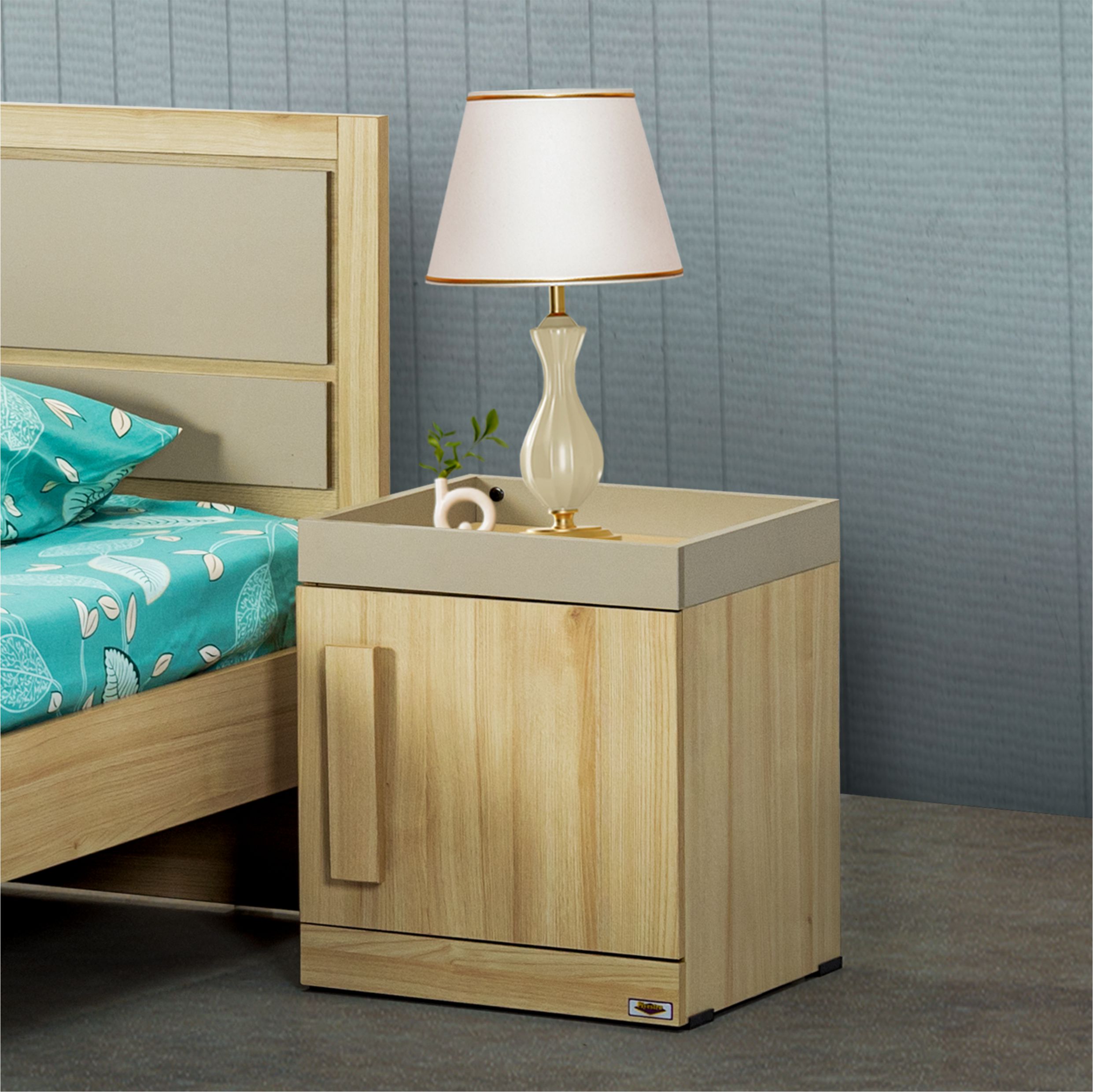 Introducing our Austin Bedside Cupboard, Crafted from durable melamine faced engineered wood. It is a functional and stylish addition to your bedroom. This unique two-tone bedside table offers practical storage with a hinged door featuring a strip handle for easy access. The table top features a protective ledge to prevent items from falling, ensuring a clutter-free space. with safety in mind, this bedside cupboard boasts no sharp corners. Upgrade your bedroom with this bedside companion.
