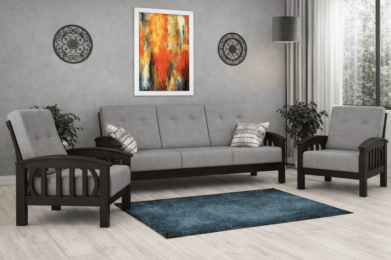 The SOLO Sofa Set is thoughtfully crafted using high-quality solid wood to deliver strength, stability, and enduring performance. Its well-structured wooden frame reflects fine craftsmanship, while the clean lines and balanced proportions give it a timeless look that suits both modern and classic spaces. The neutral fabric upholstery enhances its versatility, allowing it to blend seamlessly with a variety of interior styles.